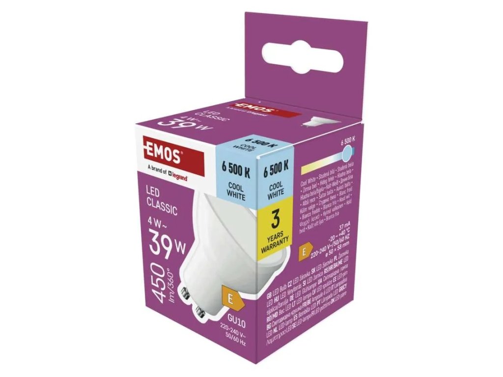 EMOS Classic MR16 GU10, 4W, studená biela ZQ8E24