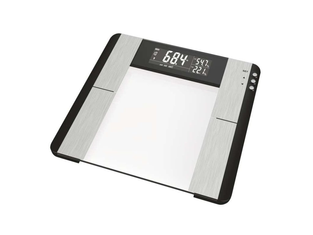 Digitálna osobná váha s výpočtom BMI indexu (množstvo tuku, vody a svalovej hmoty v tele).