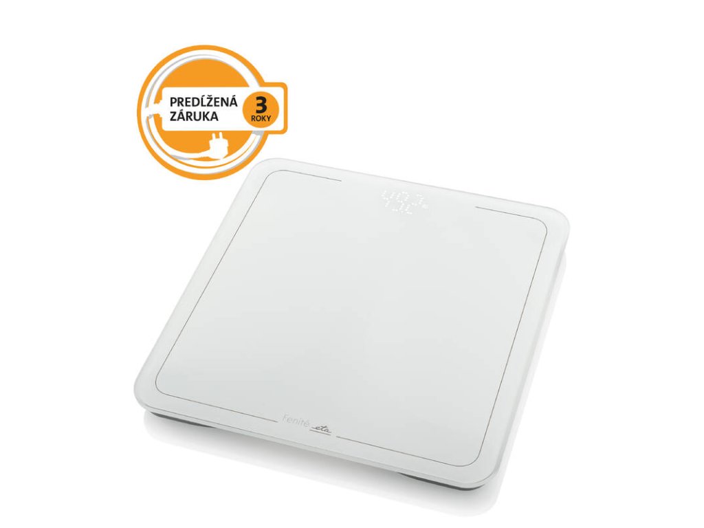 Osobná váha z kolekcie ETA Fenité v bielom nenápadnom dizajne sa stane elegantným doplnkom vo vašej kúpeľni. Sklenená vážiaca plocha je vyrobená z bezpečnostného skla s hrúbkou 6 mm. Maximálna kapacita váhy je 180 kg. Na prehľadnom LED displeji možno využiť dve merné jednotky, a to kilogramy a libry. Váženie je pritom presné na 100 g. Batériu výrazne ušetrí automatické vypínanie. Na prípadné preťaženie alebo slabú batériu vás váha upozorní pomocou indikátora na displeji. Protišmykové nožičky zaistia stabilitu na akomkoľvek povrchu. Prevádzku osobnej váhy ETA Fenité zabezpečujú 3 ks batérie AAA, ktoré sú súčasťou balenia.